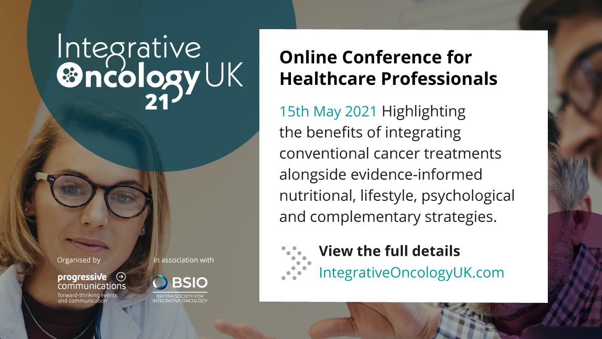 Taking place on Saturday 15th May, there’s a new online conference for healthcare professionals looking to learn more about the benefits of an evidence based integrative approach to cancer care to optimise health, quality of life and clinical outcomes. The conference will highlight the benefits of integrating conventional cancer treatments alongside evidence-informed psychological, nutritional, lifestyle […]