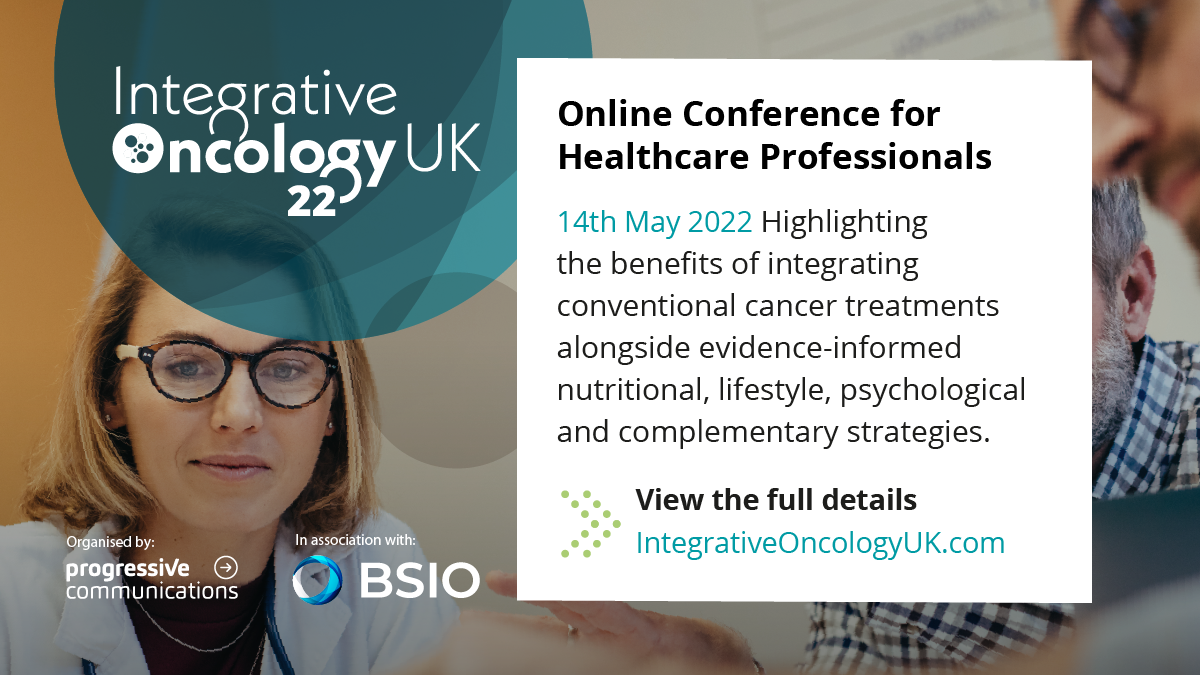 The online event designed for healthcare professionals looking to optimise and support patient care. Integrative oncology aims to optimise health, quality of life, and clinical outcomes across the cancer care continuum and to empower people to prevent cancer and become active participants before, during, and beyond cancer treatment. During the one-day online event, oncologists, doctors, […]